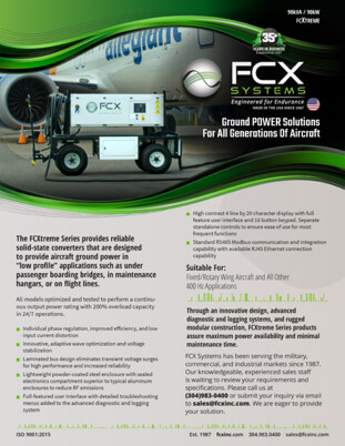 Product dependability, durability, ease of operation and sustainability are the hallmarks of all FCX products manufactured for the commercial, industrial, military and shore power markets worldwide.